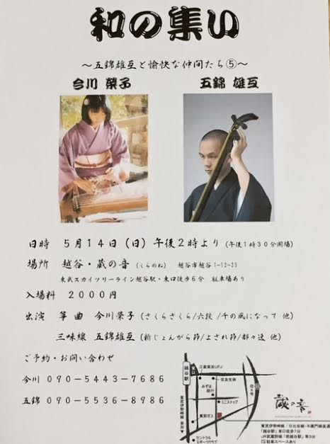 5月14日(日)、お琴の今川榮子さんとのジョイントライブがあります。