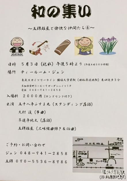 僕主催のGIG「和の集い」〜五錦雄互と愉快な仲間たち〜 の第4弾を開催します。