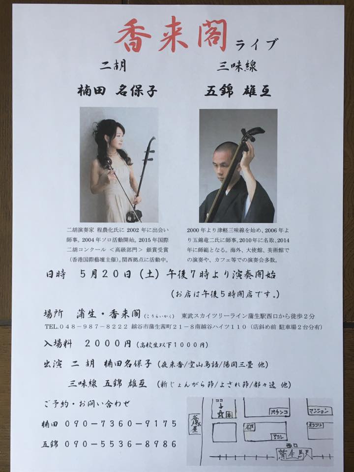 二胡奏者の楠田名保子さんとジョイントライブがあります。