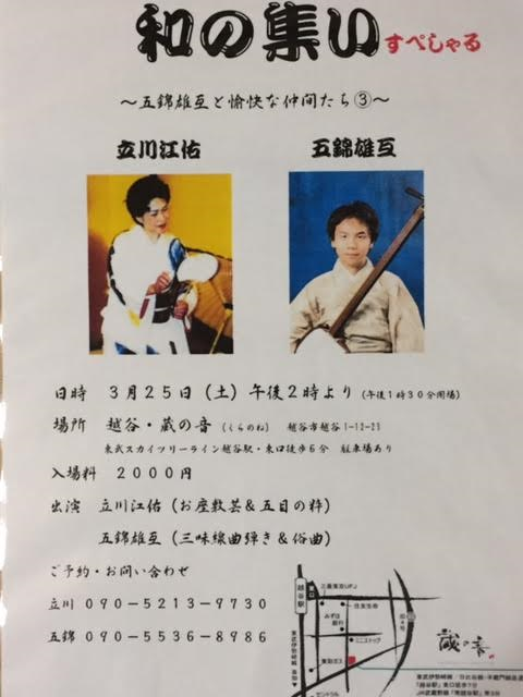14日(日)越谷・蔵の音 和の集い⑤ 琴の今川榮子さんとのジョイントライブ 午後2時~
