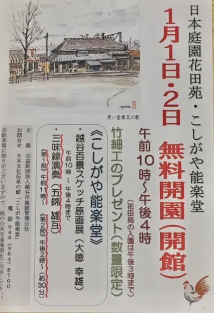 2017年のお正月、1月1日と2日に、こしがや能楽堂の大広間で弾かせて頂きます。