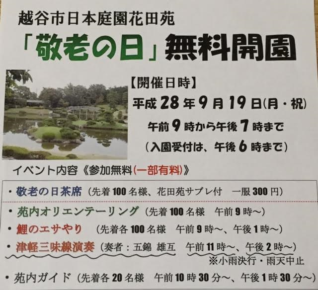 今年も9月19日(月祝)敬老の日、越谷の日本庭園・花田苑で弾かせて頂きます。