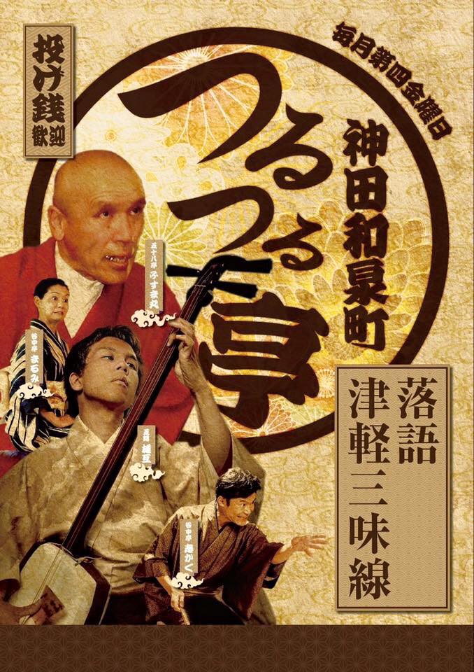 明日、25日(金)いわゆるクリスマスですが、神田和泉町のエスニック料理店「ぷるにま」の2階の座敷にて、落語と津軽三味線の会「つるつる寄席」が開催されます。