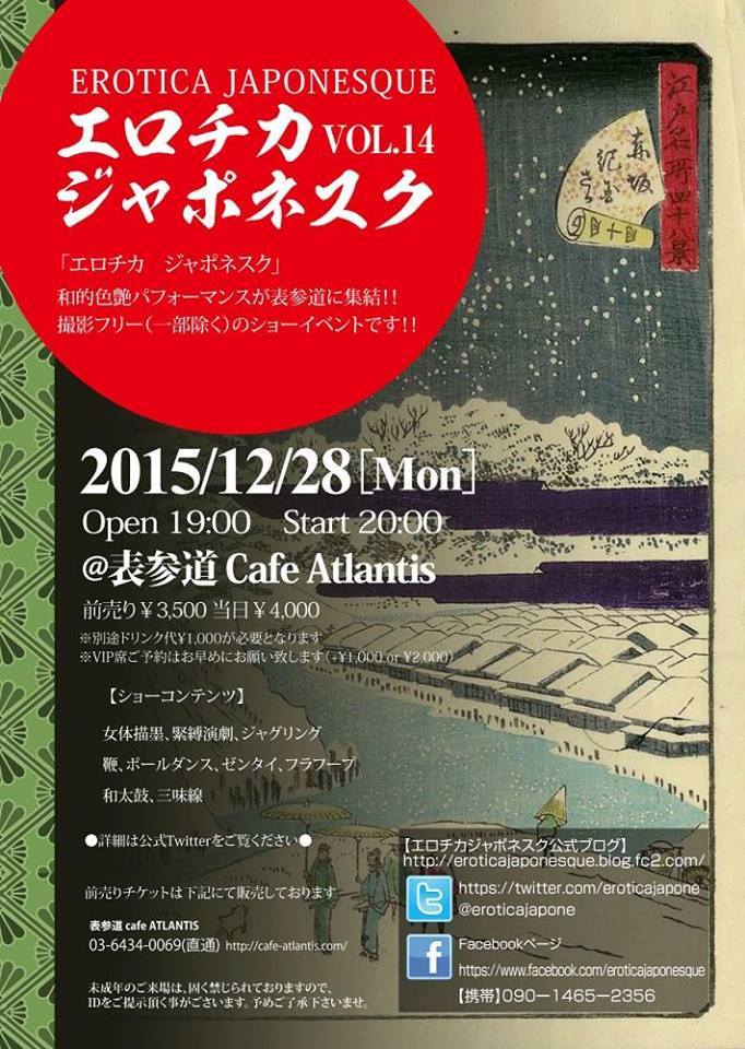 今回も緊縛ショーをメインに、マユミさんのポールダンス、ナオミさんの鞭パフォーマンス、アユミさんのフラフープ、カヤさんたちの全身タイツダンス、ケンジさんの和太鼓、ジャグリングなど、その世界の第一人者が揃います。