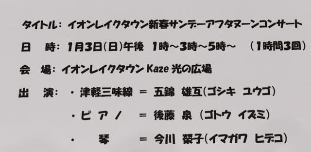 3日 イオンレイクタウン KAZE 光の広場 pm1時~、pm3時~、pm5時~