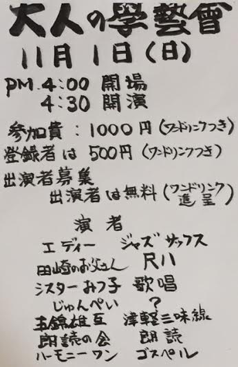 といってもオープンマイク、好きな時に来て好きなように唄ったり演奏して下さい。