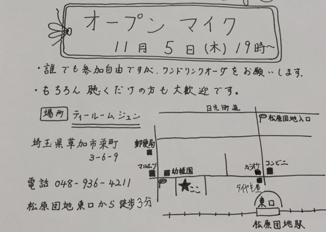 11月5日(木)午後7時~、松原団地ティールムジュンにて。