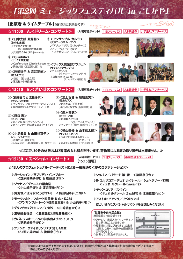 いよいよ来週に迫りました、第2回ミュージックフェスティバルinこしがや。