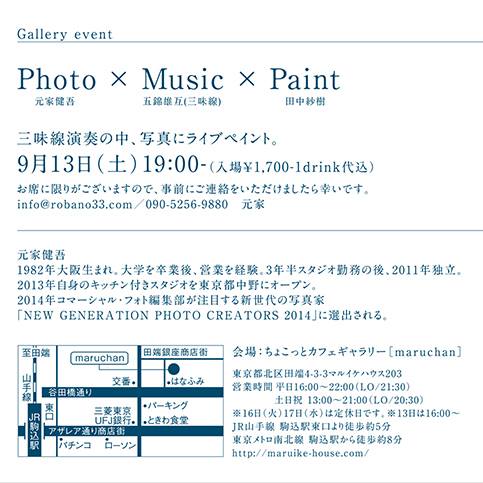 9月13日(土)午後7時から、駒込・カフェまるちゃんにて、元家健吾さんの写真に田中紗樹が描く時に、弾きます。