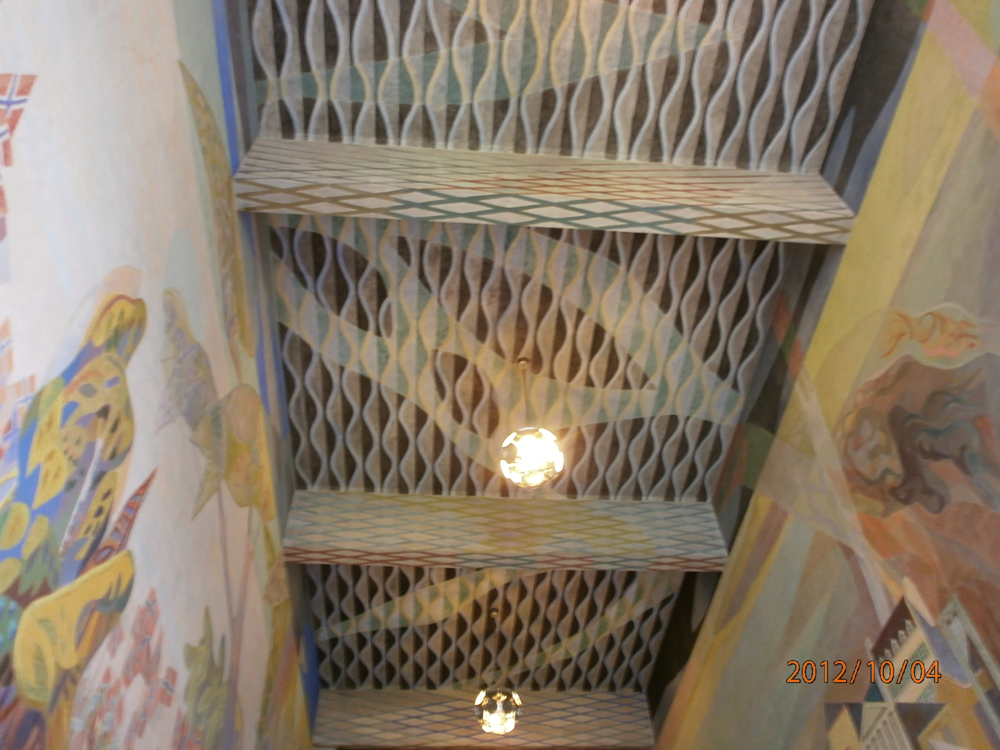 壁画が凄いということだったが良く分からない、素晴らしいのは椅子や照明、カーテンなどのデザインと色味、これは素敵。