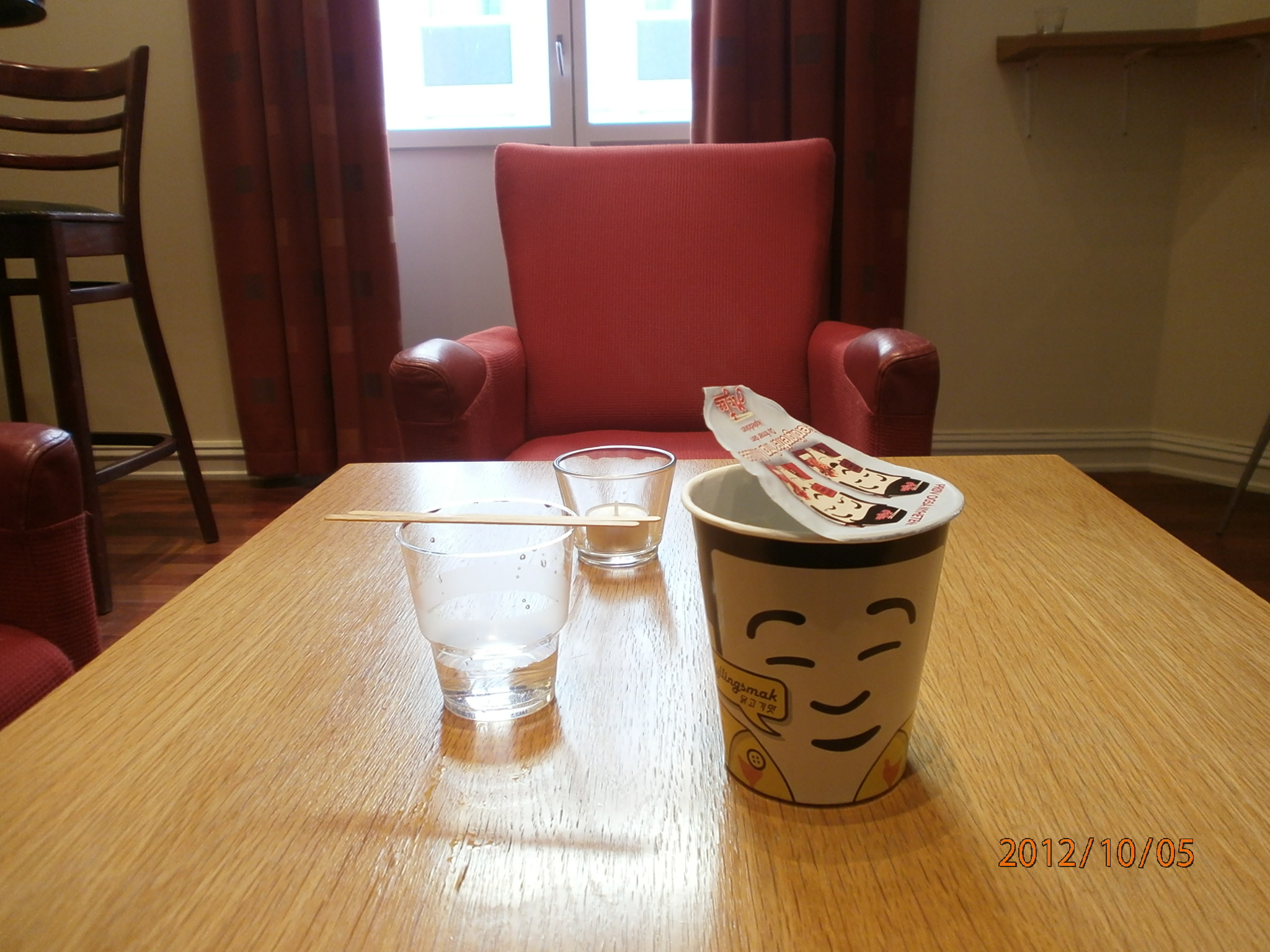 帰りにスーパーに寄り、こちらでは何処にでも売っている、MrLeeのカップラーメンを買い、ホテルの休憩室で食べる、とても美味しく、水道水もまた美味しく。