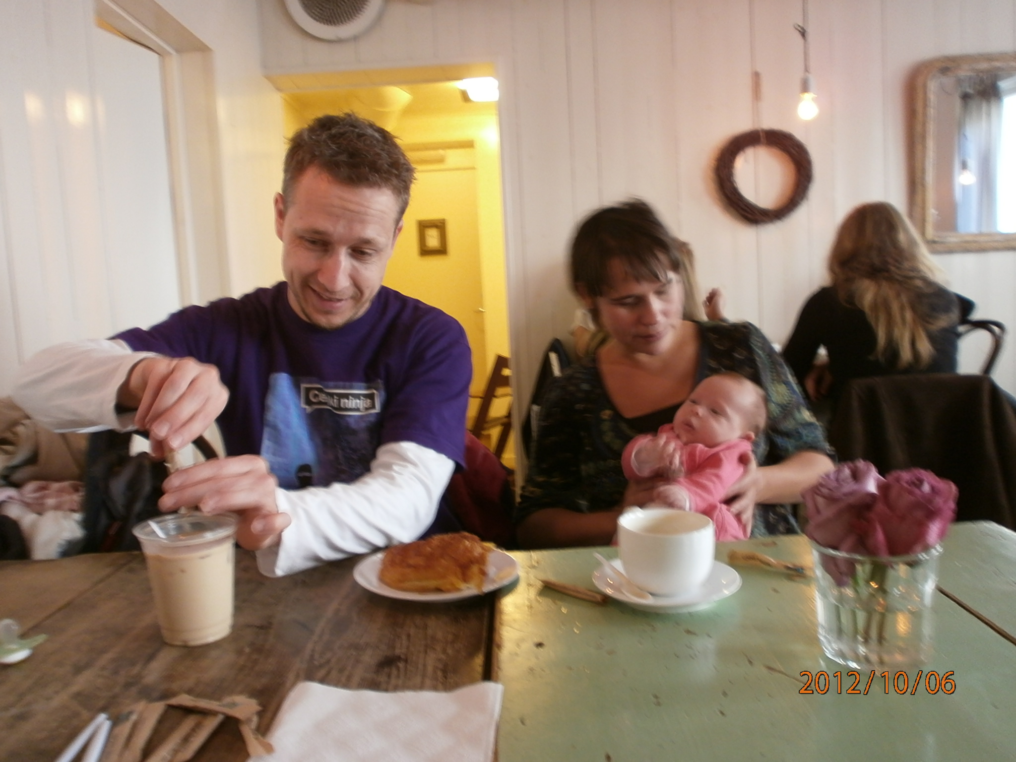 チエコさんの紹介で空手4段のアンドゥ夫妻と会い、散歩、カフェでお茶をする。