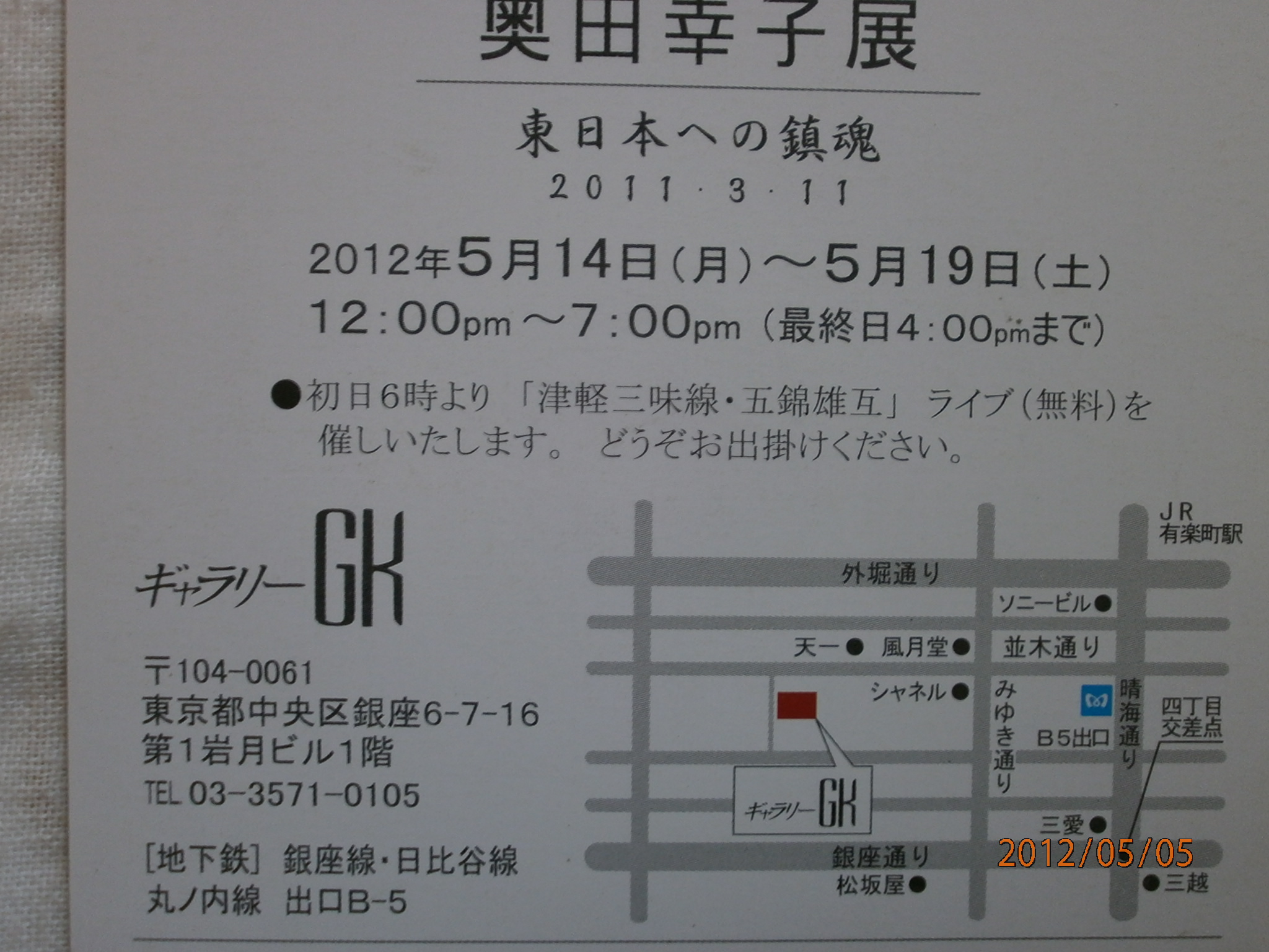 赤羽ギャラリー遊(ゆう)にて、ライブがあります。