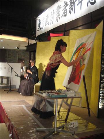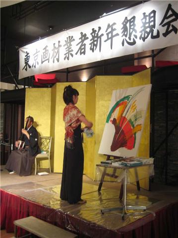 田中沙樹ちゃんとライブペインティングとある業界の新年会です。