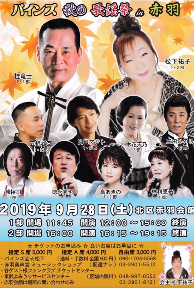 9月28日(土)北区赤羽会館にて、パインズ秋の歌謡祭in赤羽に出演させて頂きます。