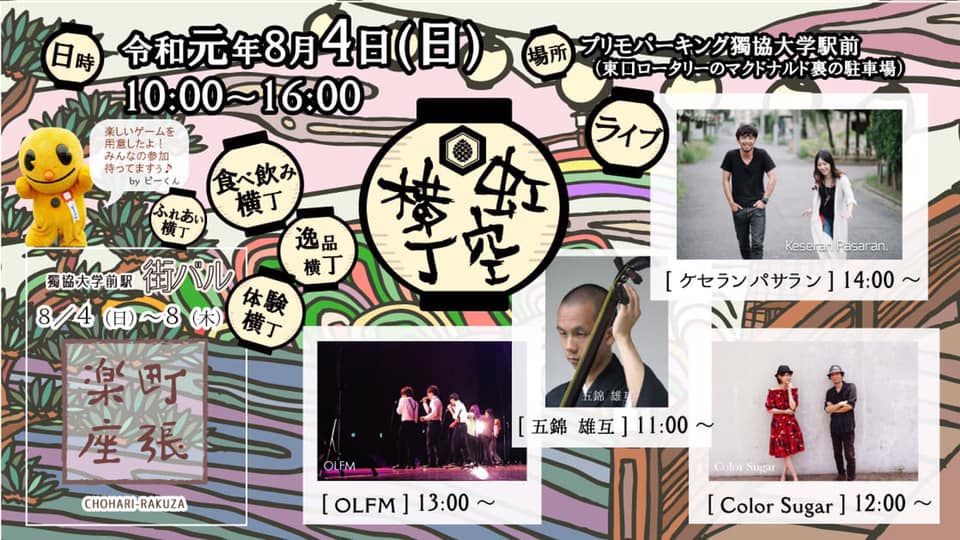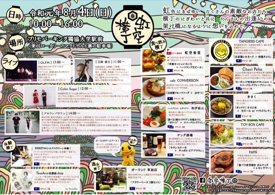 8月4日(日)獨協大学駅前東口ロータリーのマクドナルドの裏にある駐車場にて虹空横丁というイベントが開催されます。