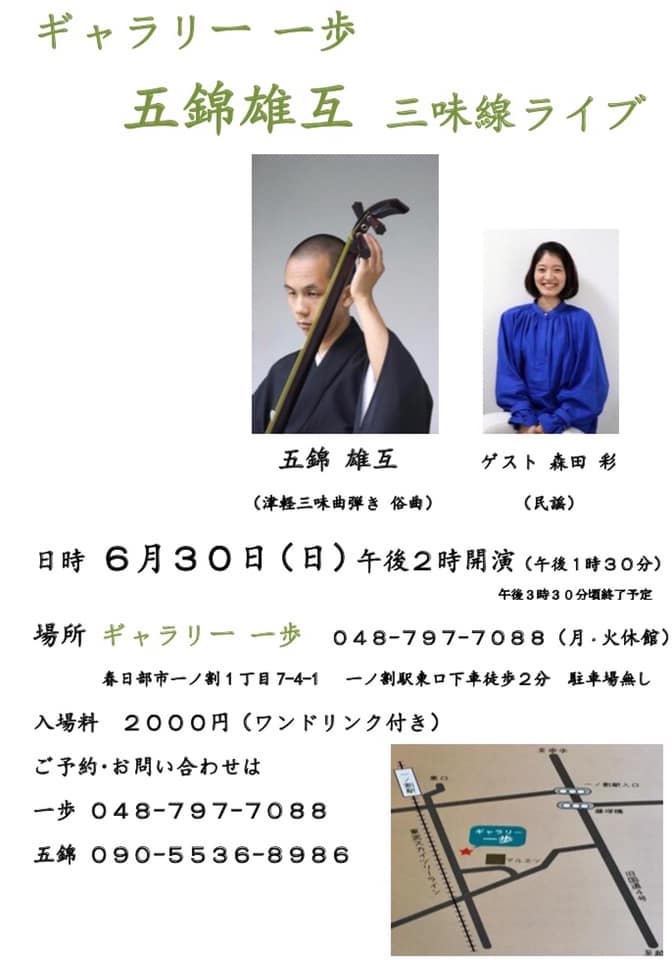 6月30日(日)午後2時から、一ノ割駅近くのギャラリー一歩さんにてライブをさせて頂きます。
