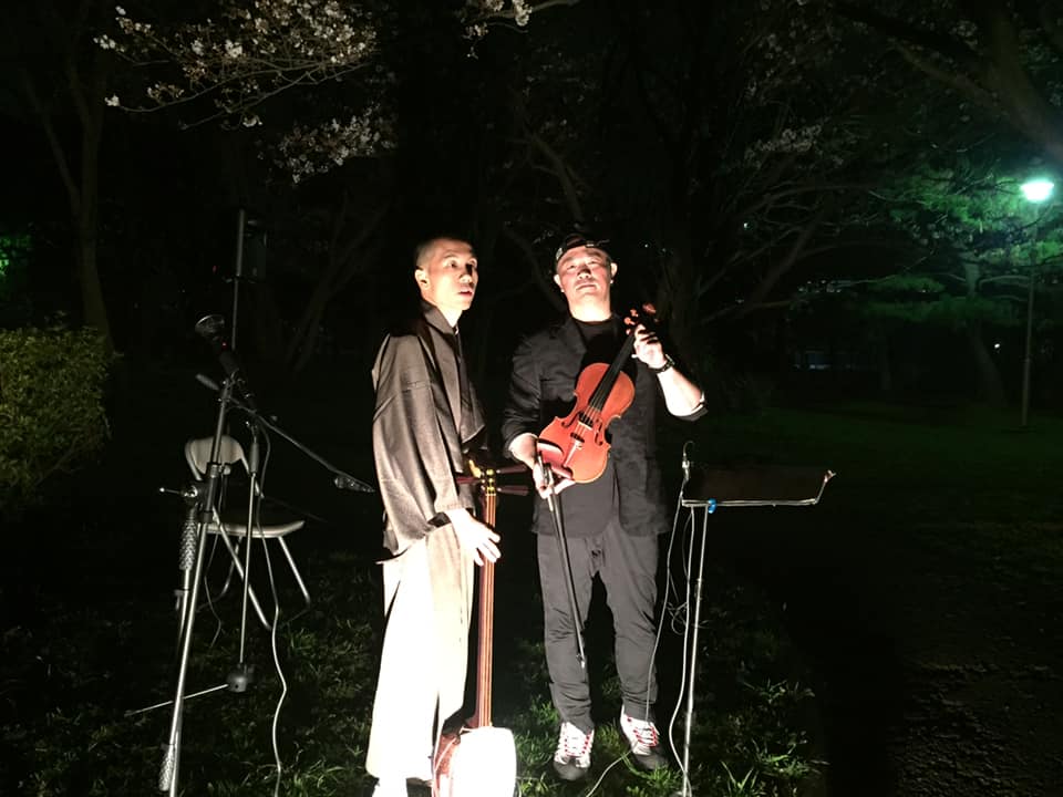 ヴァイオリンの西垣さんのお声掛けで新浦安の公園にて余興のお仕事。