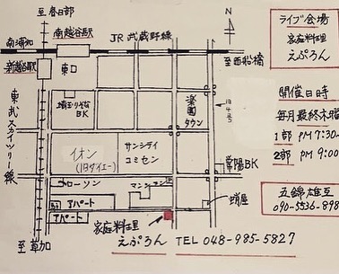 新越谷駅、南越谷駅から5分くらい。