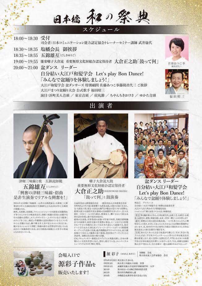五錦雄互の三味線曲弾きや都都逸、小鹿富男さん、かし村きげんさんの民謡が入るかも。