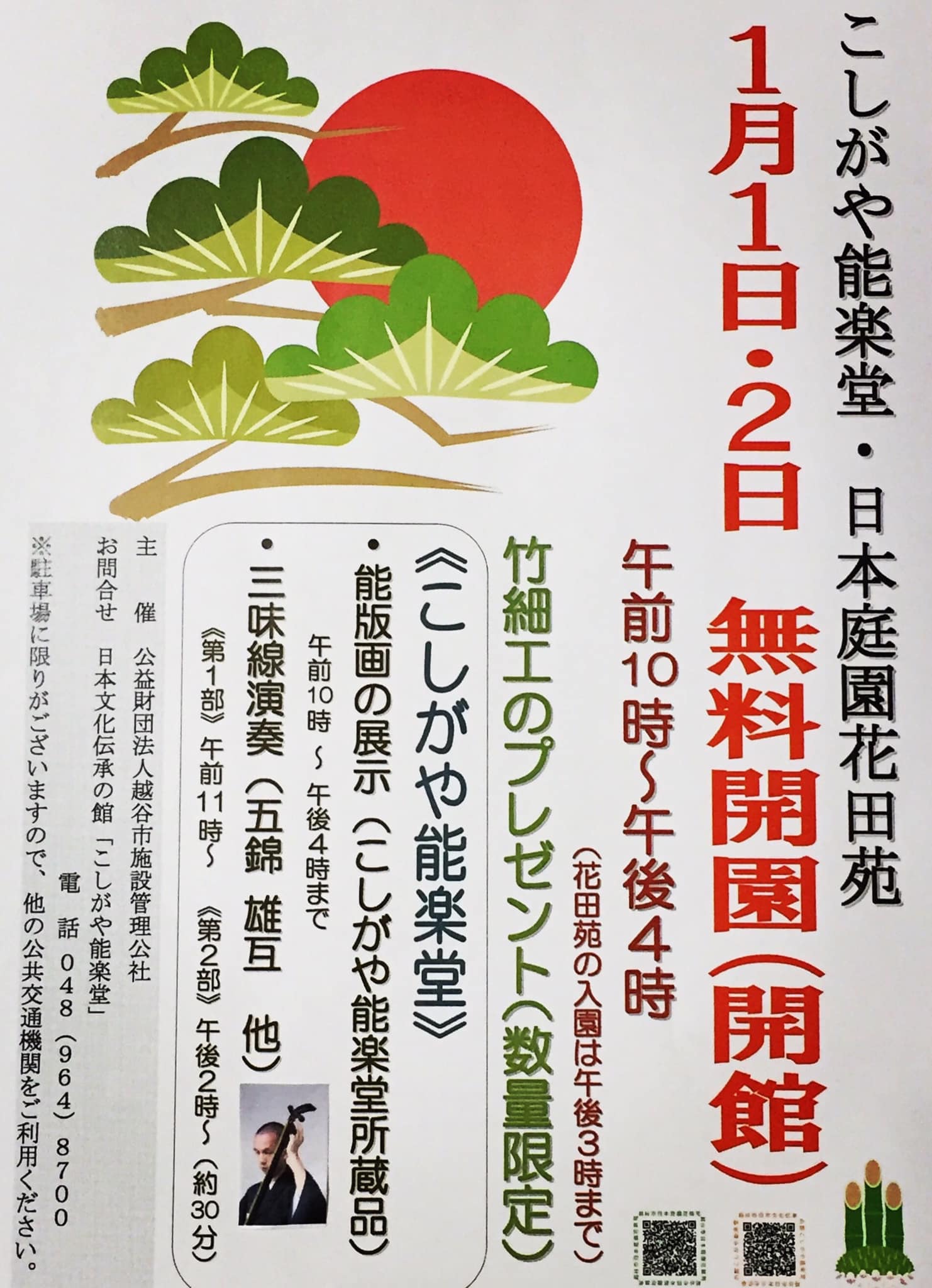 2022年1月1日・2日、こしがや能楽堂大広間にて新年の演奏をさせていただきます。